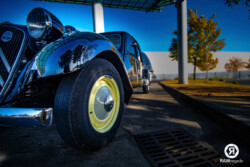 Lors d’une séance de prise de vue urbaine, j’étais proche d’une station-service lorsque j’ai vu arriver une magnifique Citroën Traction de 1955. J’ai demandé et eu l’autorisation de la photographier.